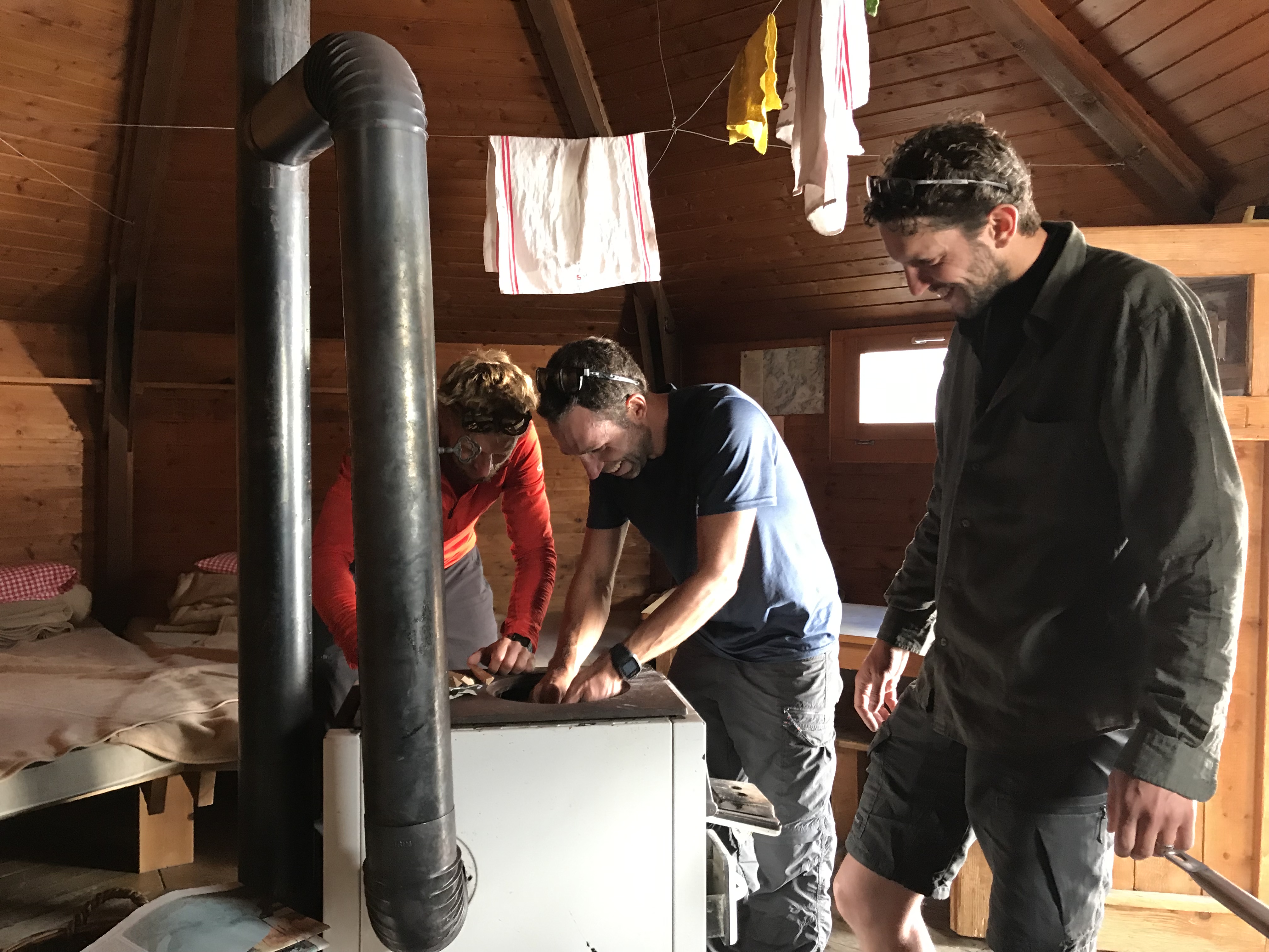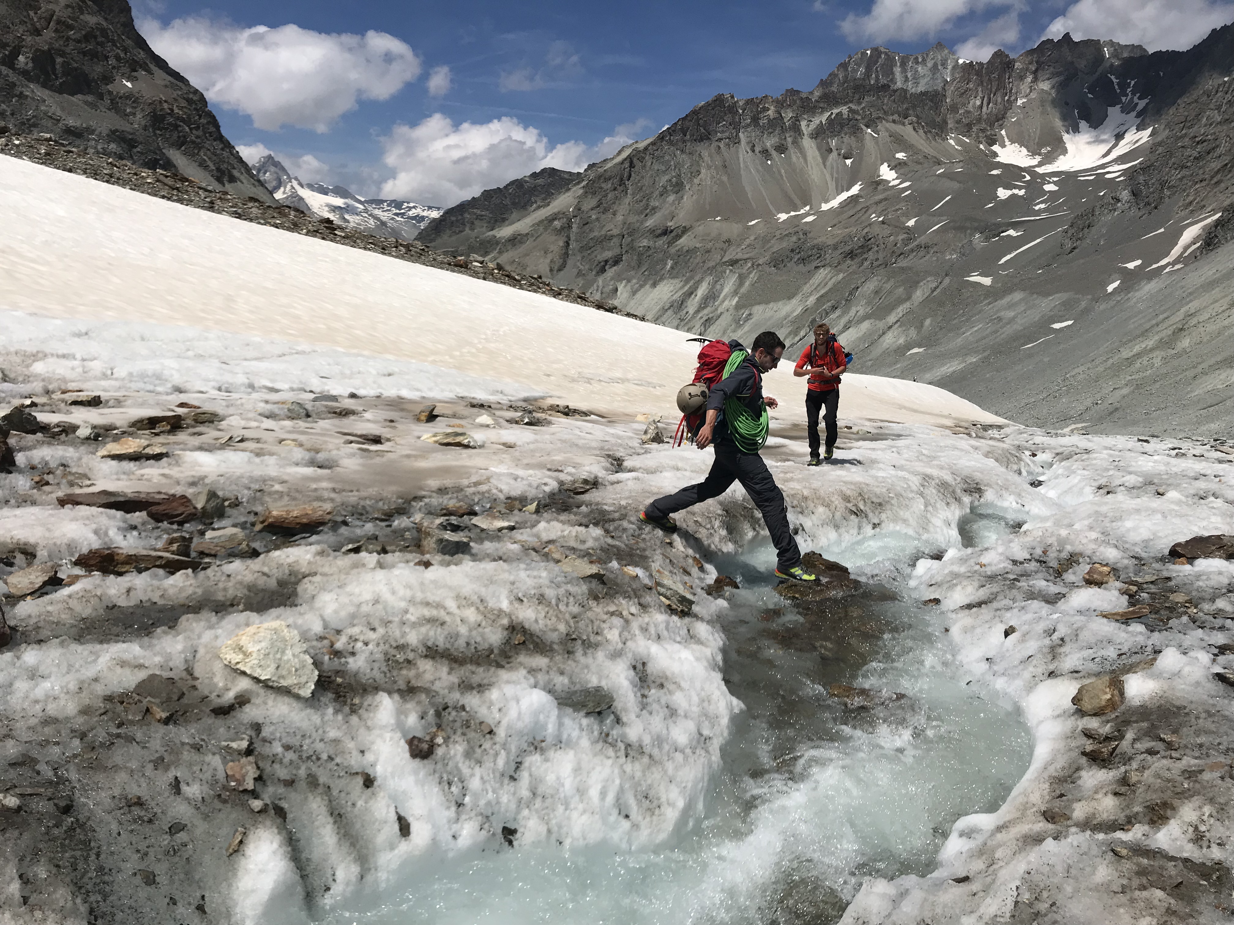 Deux jours au dessus d’Arolla dans le petit bivouac des Bouquetins. Chargé comme des mules avec les bières. 8kg pour 5 personnes.