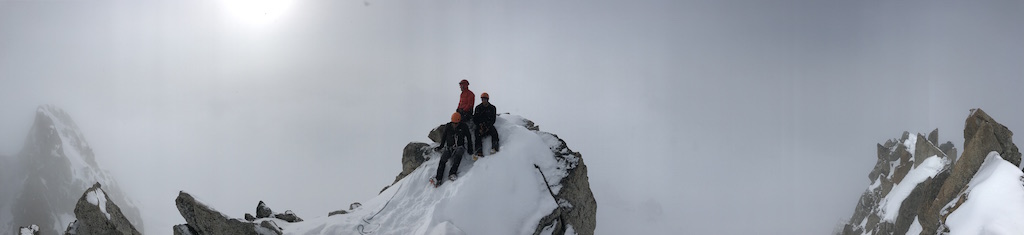 Ambiance différente pour Chamonix et ces montagnes, beaucoup de neige et une journée longue et difficile pour atteindre en 16h le sommet.