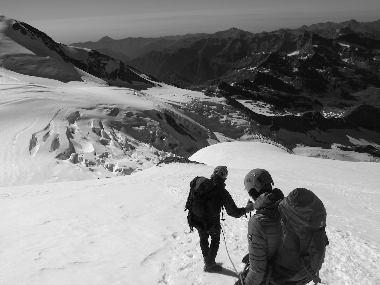 Un stage Mont blanc sous le ciel bleu… Une acclimatation qui commence en Italie sur les flancs impressionnants des glaciers du Mont rose. Avec un passage sous le Lyskamm par le naso et une Pyramide Vincent. Puis un bon plat de pate Italienne 🙂