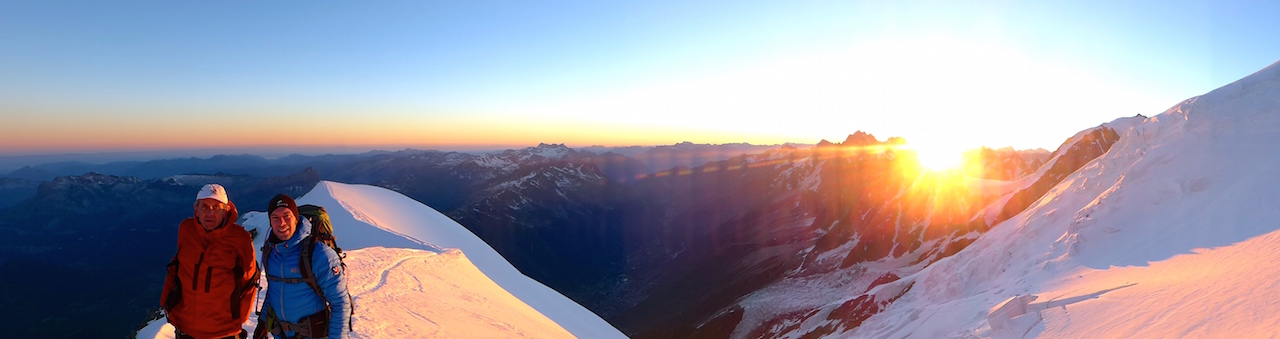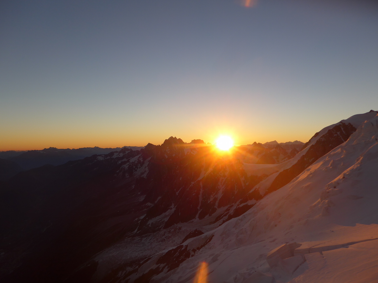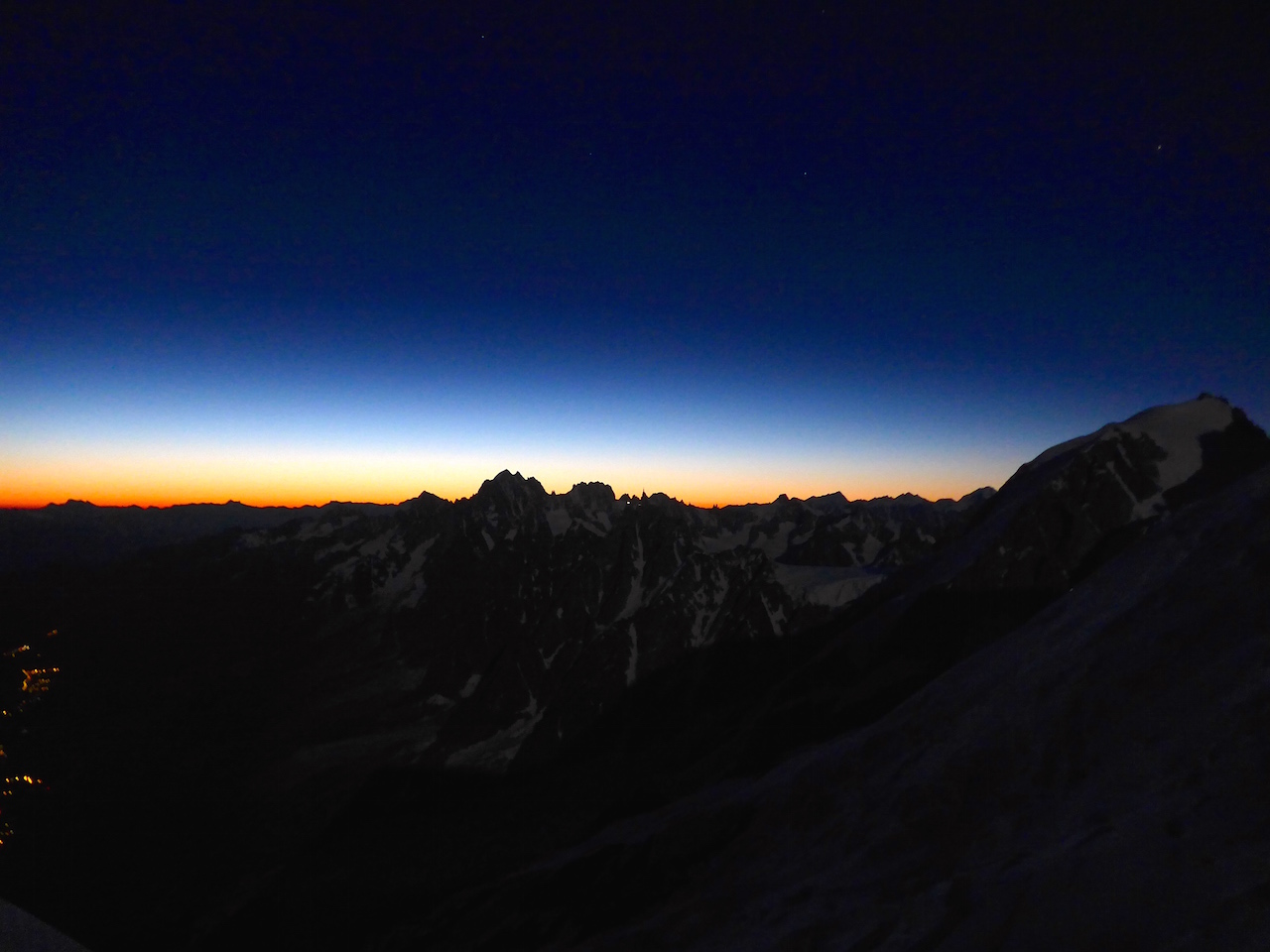 La météo est magnifique, du coup on avancera notre Mont blanc pour être dans la bonne fenêtre météo. Une nuit en tente à tête Rousse pour rafraîchir les idées avec un départ à 1h30. Des lumières superbes et des conditions royales pour arriver en haut de la bosse blanche.