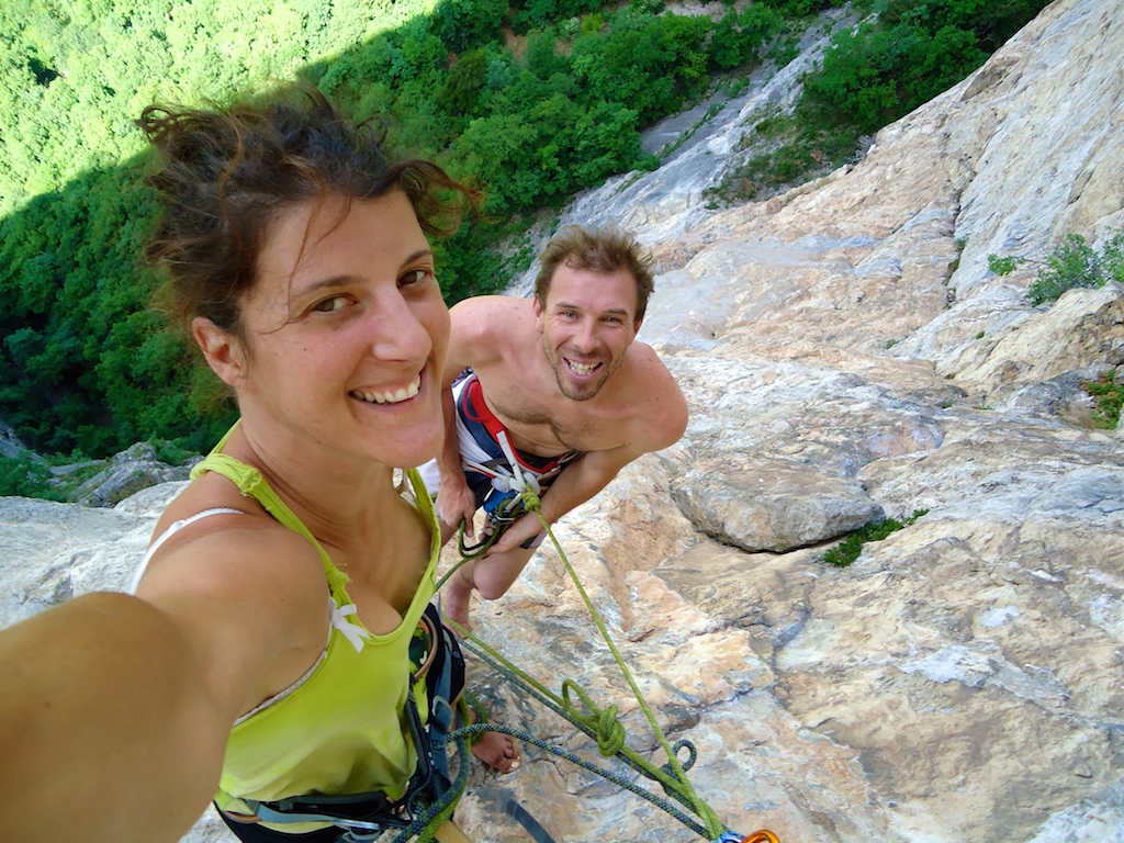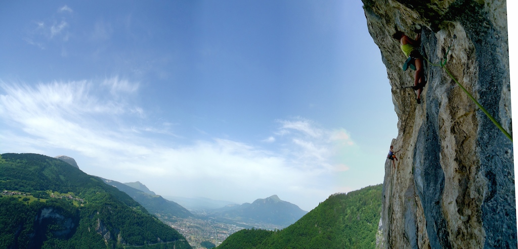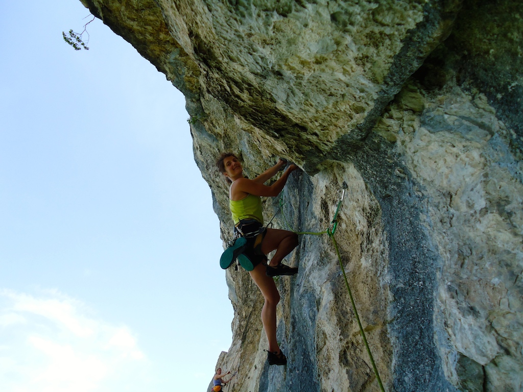 Après les rappels, nous commençons notre grimpouille. Lescalade est sympa, parfois un peu délitée au début, puis athlétique pour L6 et enfin il faut se bouger pour enchainer L7 en 7a, magique et technique.