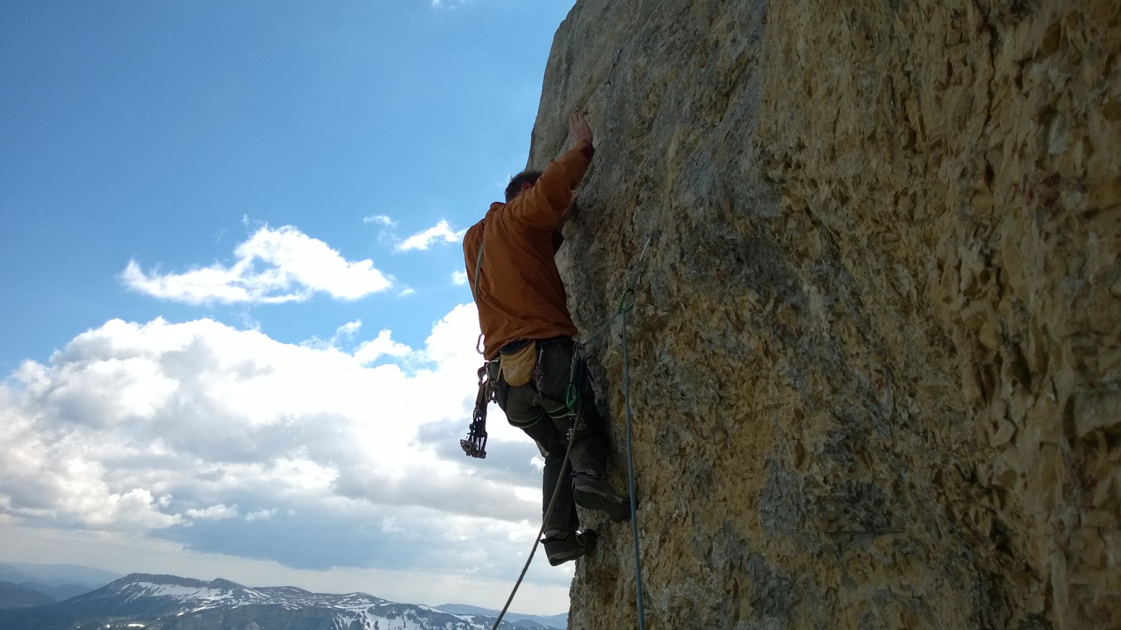 Et bien il n’y a pas photo, ils les avaient bien accrochées les anciens. Le ton est donné d’entrée de jeu quand on est au pied de cette fissure-cheminée.