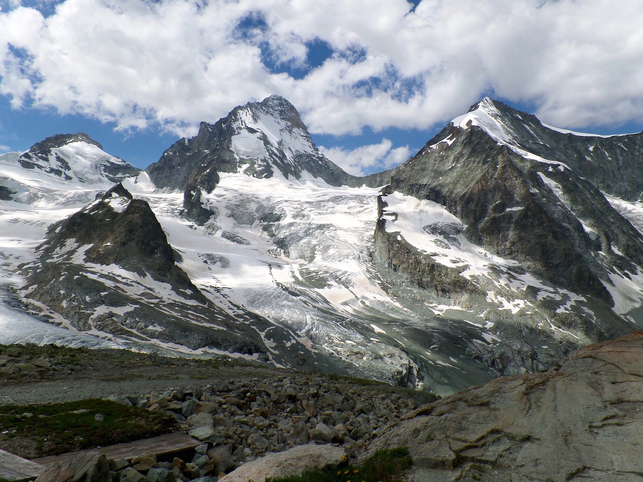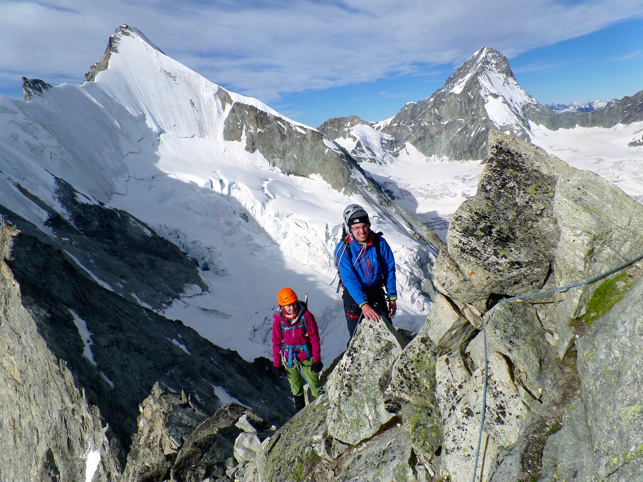On rebascule en passant par l’arête du trifhorn, une autre course AD mais cette fois, on roule et on avance…. grosse frayeur quand un bloc cède sous les pieds.