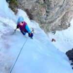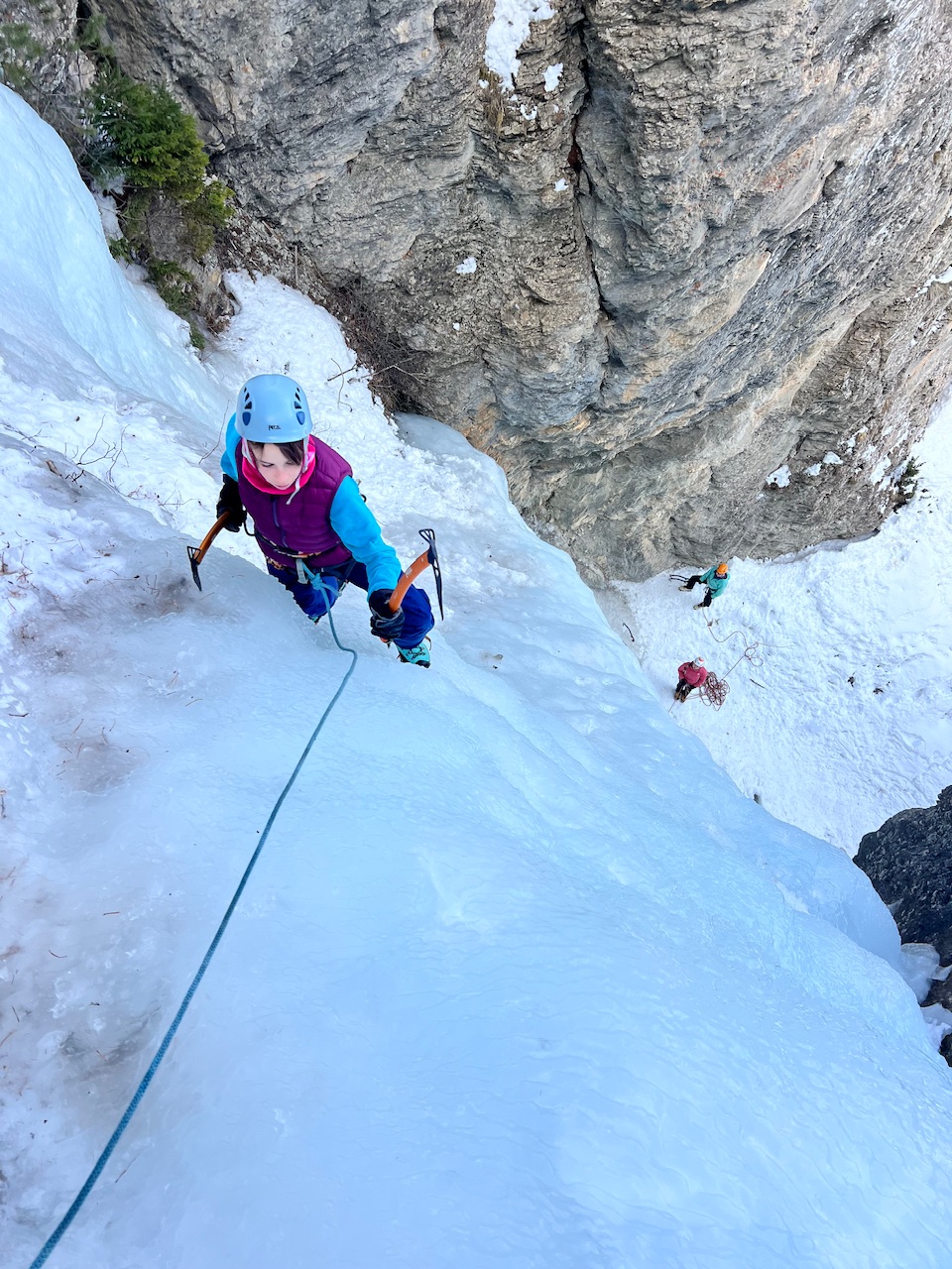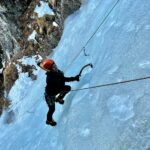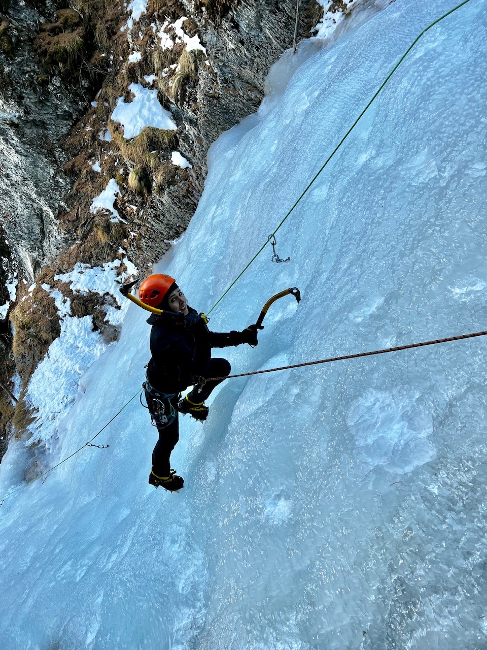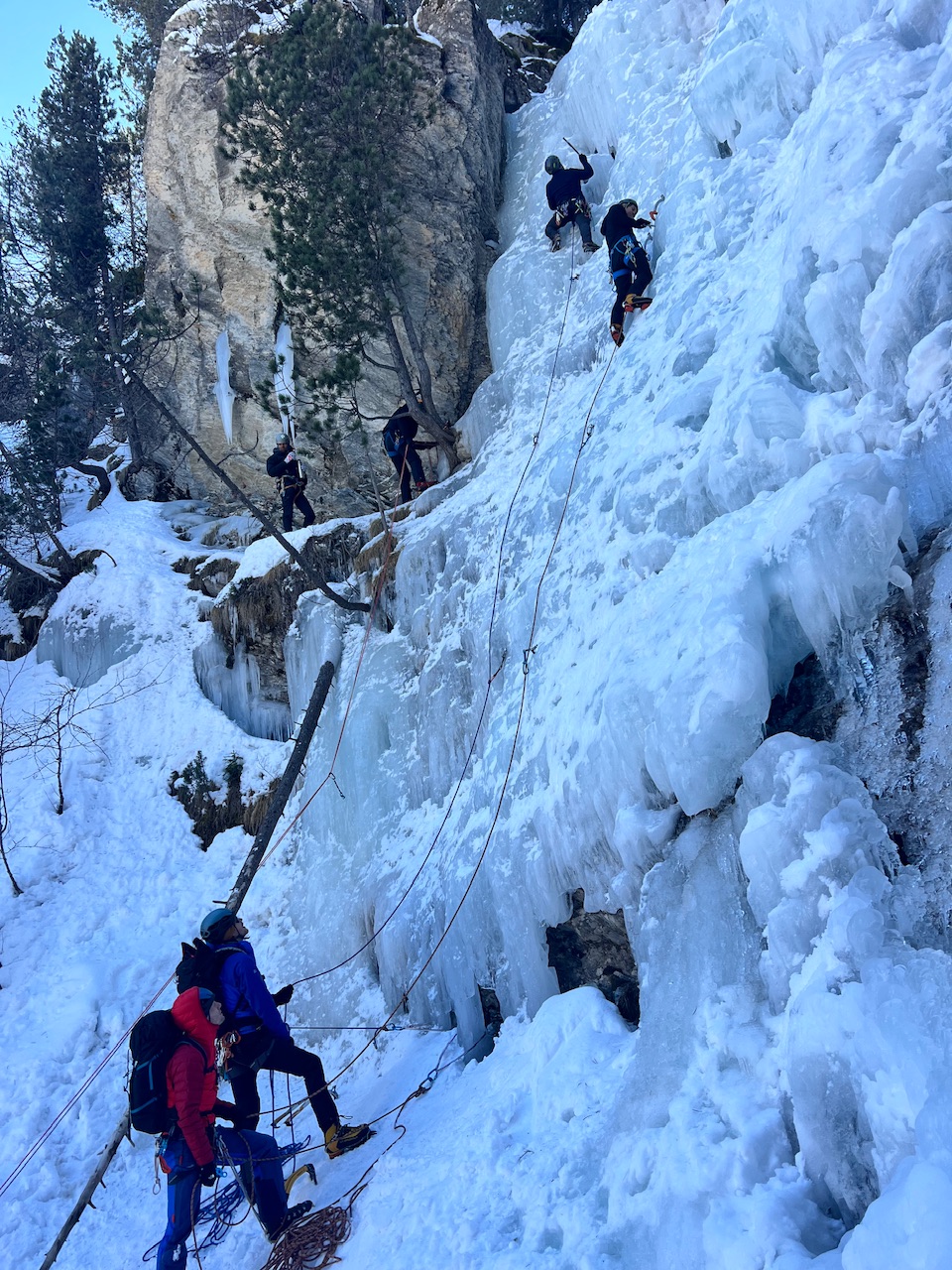 Proche de l’Italie, et loin des grands axes routiers, tous les ingrédients pour faire un week end bucolique sur la glace. Plus sympa et tranquille, dans un cadre ensoleillé pour prendre le temps de voir ou revoir les techniques de glace, en petit groupe de 2 clients max avec le guide. Bref le charme des vallées alpines reculées à portée de mains. Prêt et vérification du matériel de sécurité. |