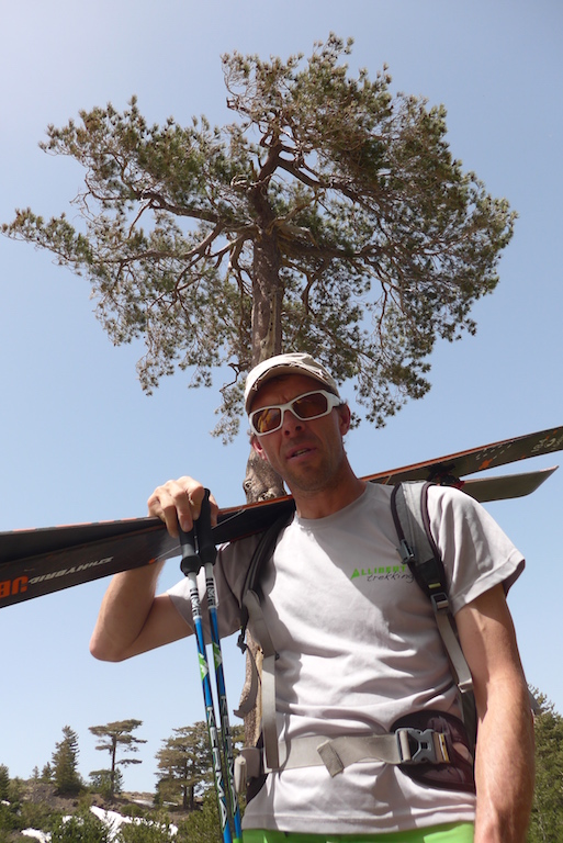 A peine plus loin on chausse les skis et nous voilà parti pour 1500m de dénivelé sous un soleil de plomb.
