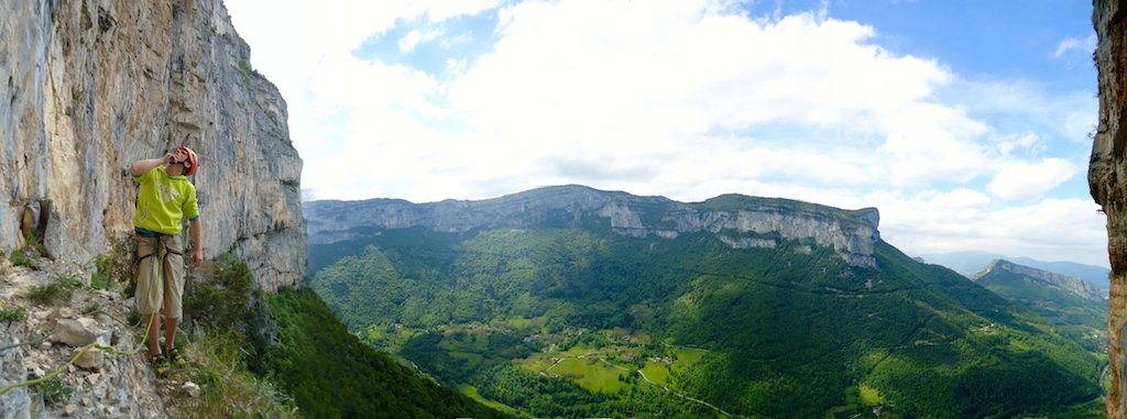 Il me propose d’y aller en tête, c’est mon tour, j’avais déjà fait cette voie en la randonnant mais là je ne me sens pas bien dans mes chaussons, je ne ferai guère mieux que Julien, voir pire… je finis tout de même la longueur.