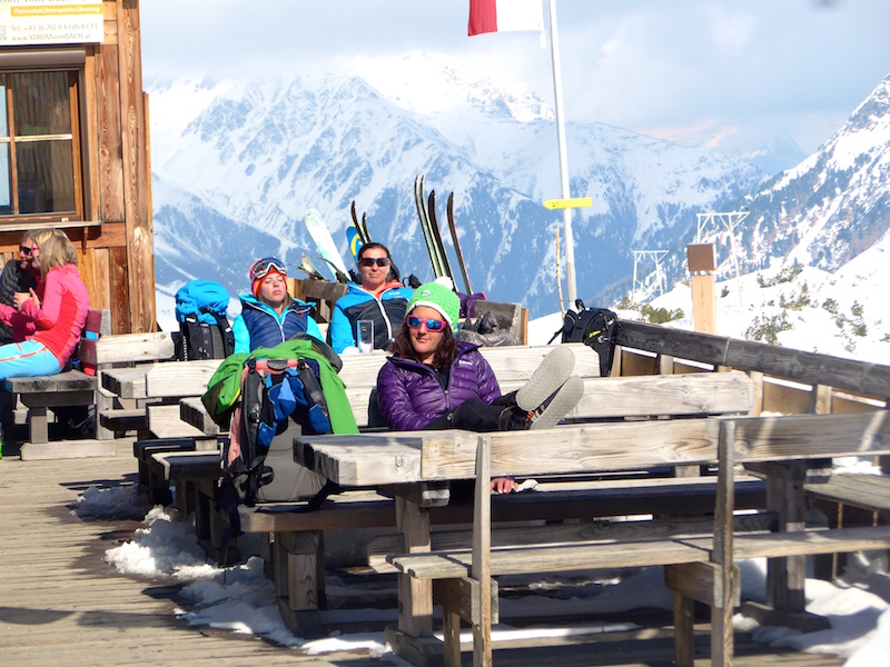 Les remontées mécaniques de la grosse station de Mutterberg, nous propulse directement sur les hauteurs et avec quelques coups de peaux on est vite sur les hauts sommets du Stubaï.